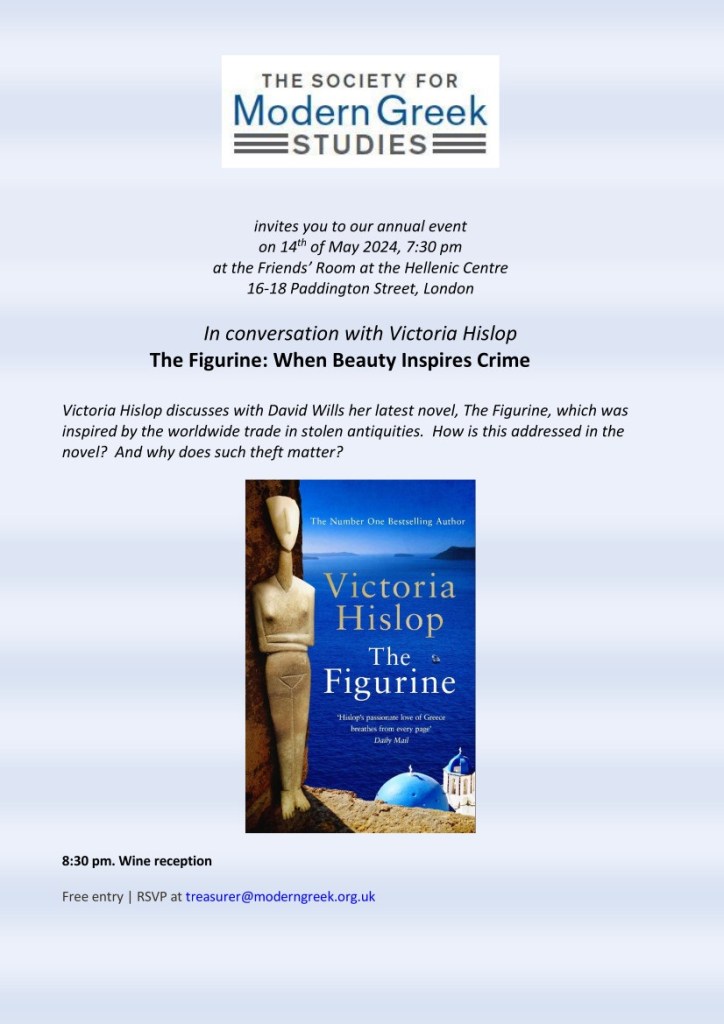 Free entry. RSVP at treasurer@moderngreek.org.uk